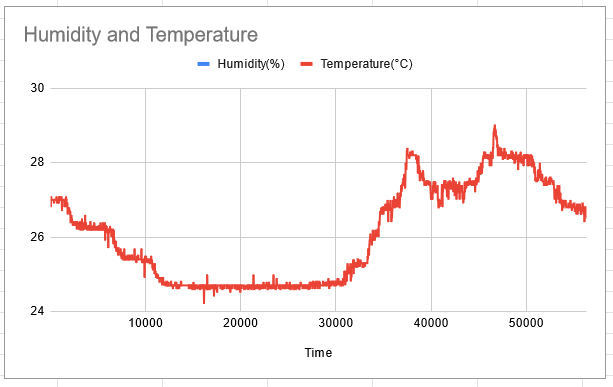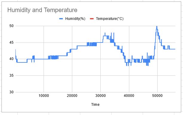 The resolution of the humidity sensor is less than the temperature sensor, which is why the temperature graph is more detailed.